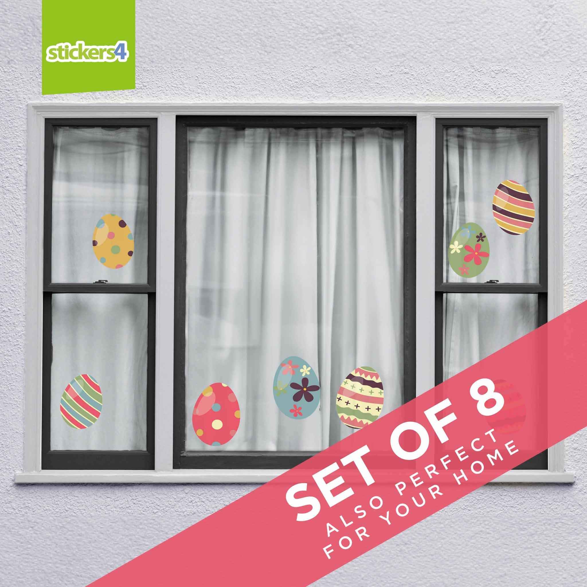 Add a bright, artistic touch to your Easter window with these 8 Arty Eggs Window Stickers. Each egg features a colourful, hand-drawn style design, perfect for creating a cheerful Easter display in home or shop windows.