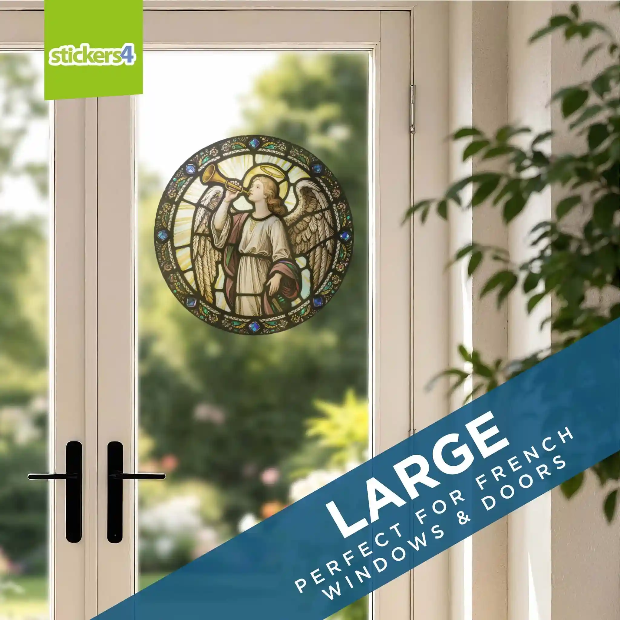 Angel with Trumpet Stained Glass Window Cling Sticker