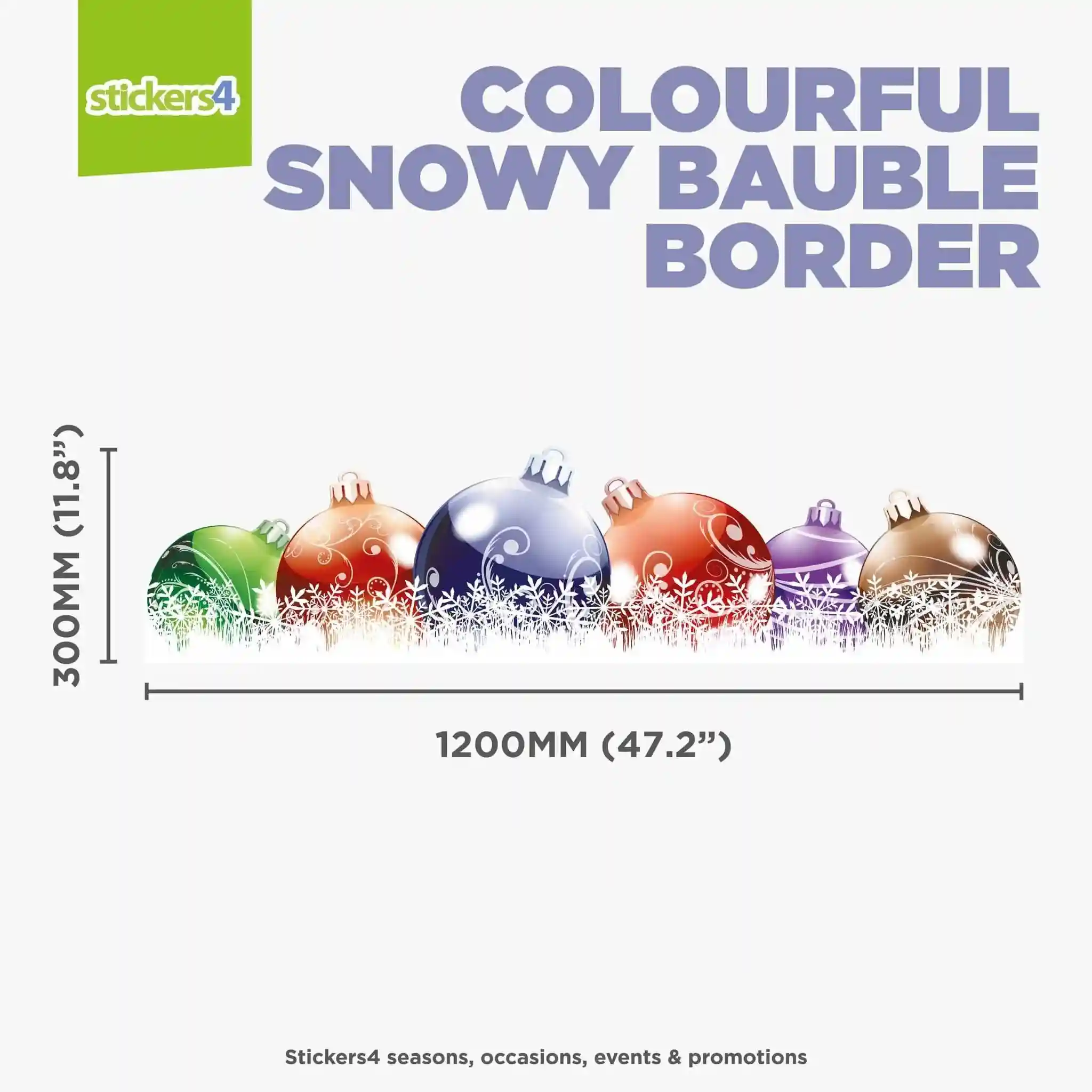 A beautiful full colour and white snowy baubles window border. Don't forget all our borders are reusable year after year so offering excellent value for money. This border is repeatable along the bottom of your window and can easily be trimmed to size