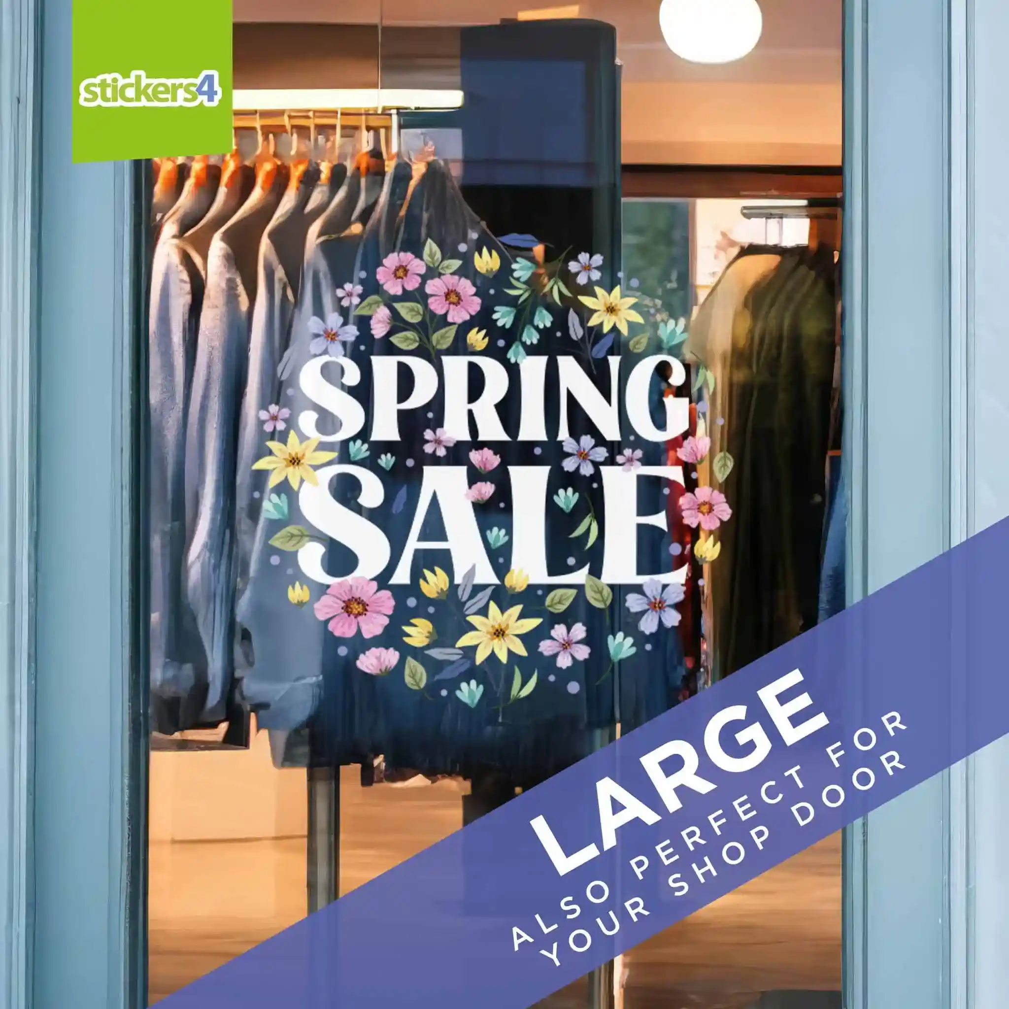 Featuring vibrant spring flowers and bold "SPRING SALE" text, this sticker is perfect for adding a bright and lively touch to your shop windows while highlighting your special spring promotions.