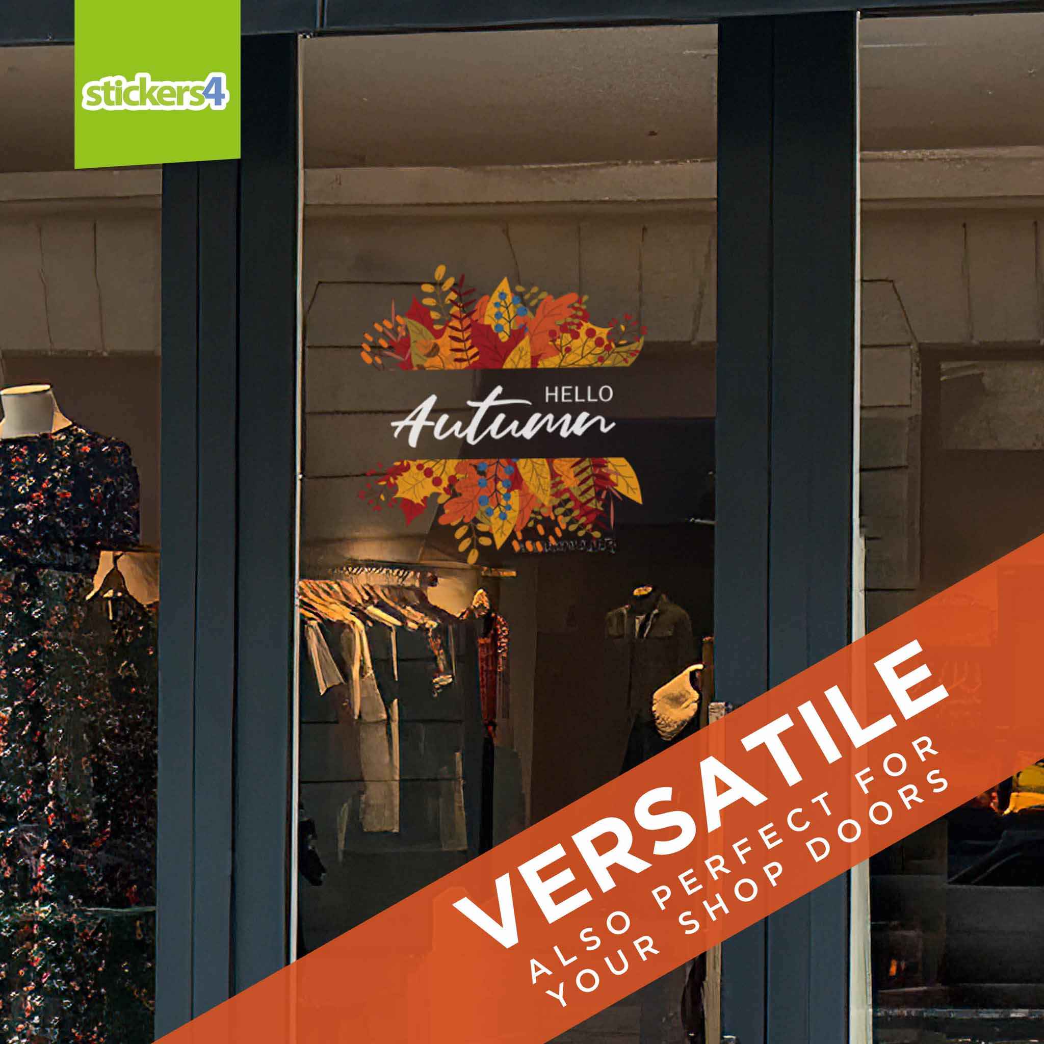 Say 'Hello' to autumn with our delightful Hello Autumn Script with Foliage Window Stickers! This vibrant, eye-catching Autumn window cling sticker is perfect for shop window displays, creating a cozy, inviting atmosphere for your customers.Â