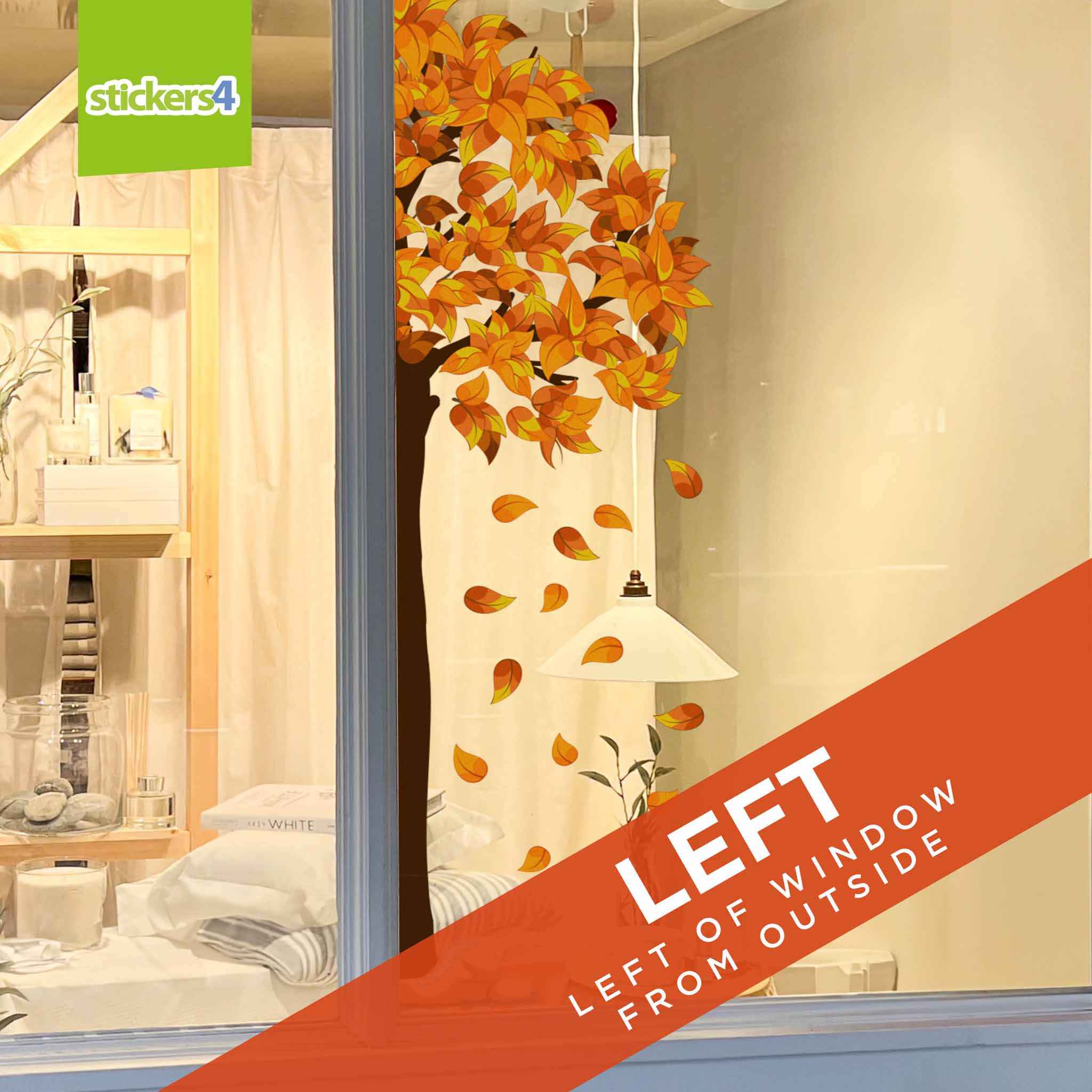 Stunning full colour AUTUMN Tree with leaves available as either a FULL tree (supplied in sections) or as just half of the tree for application to either side of your window. Each option is described below: