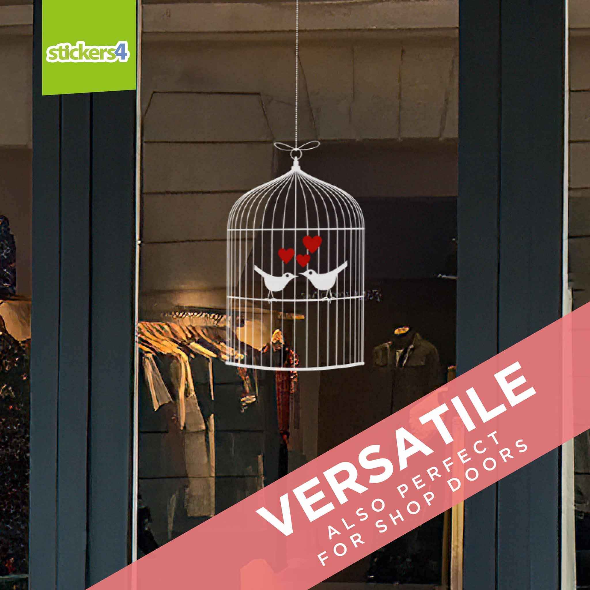 Two Lovely Love Birds in Cage Window graphic! Printed to easy to apply static cling and measures 295mm wide x 490mm tall (that's about 12" x 19") and is supplied with 1m (39") of printed ball chain effect cling which can be easily cut to the required length. As well as windows, this can also be applied to mirrors and even fridges and freezers with a smooth finish.