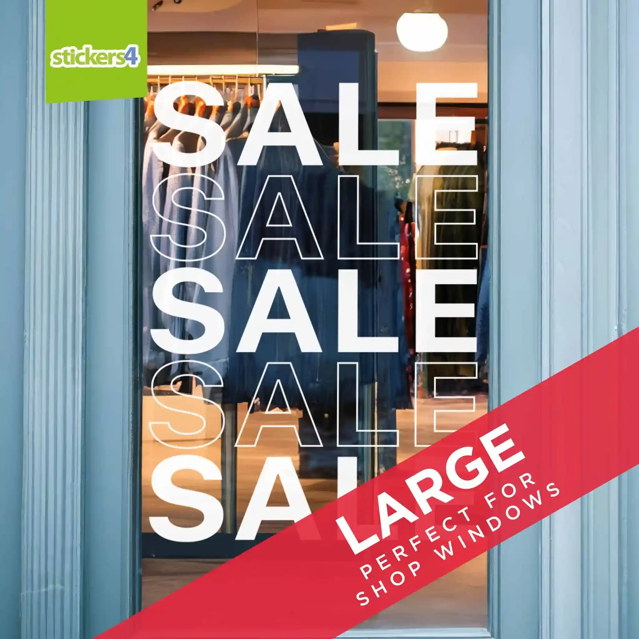 Make a bold statement with our Multi SALE White Window Sticker! Featuring large, eye-catching "SALE" text in a modern stacked design, it’s perfect for promoting your special offers and drawing attention to your windows.