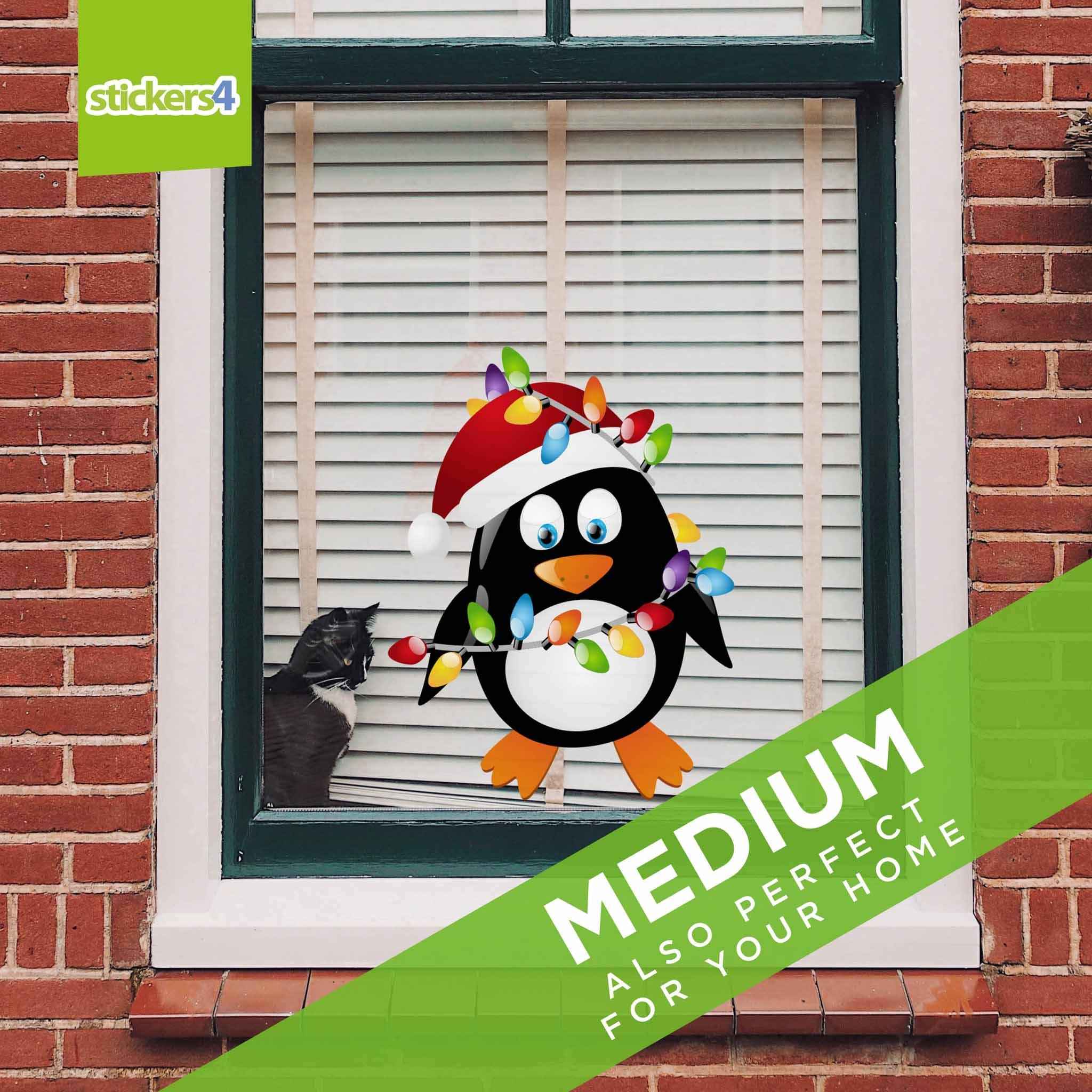 Penguin Wrapped in 'Lights' Double-Sided Window Cling Sticker