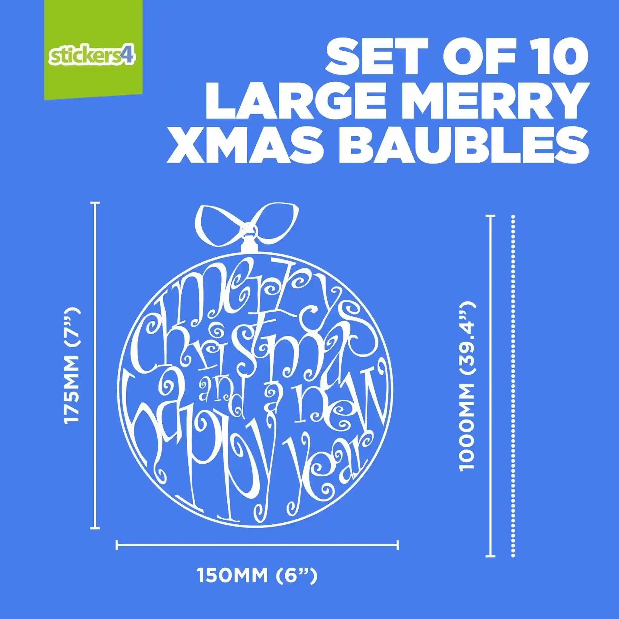 Set of 10 Large (150mm) Merry Christmas Bauble Window Stickers
