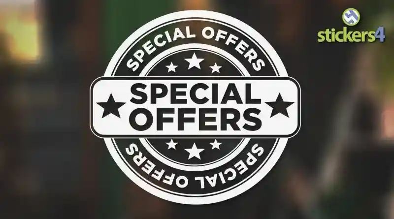 NB. The shop window image above uses 1 x Large SPECIAL OFFERS Roundel Window Sticker - Red on White and 1 x Large SPECIAL OFFERS Roundel Window Sticker - White on Clear