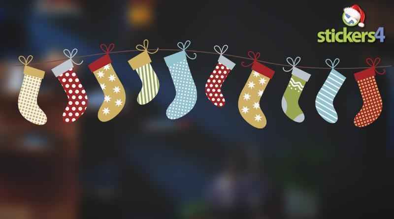 A set of vintage style hanging stockings printed in colour to cling vinyl for application to the inside of your window.